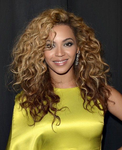 Beyonce styles her amazing long blonde and chestnut hair into voluminous cascading curls which are full of feminine power, gorgeous volume and sensual intensity.