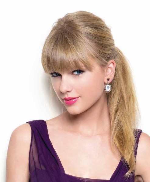 Taylor Swift’s Straight Hairstyle with Blunt Bangs /Pinterest