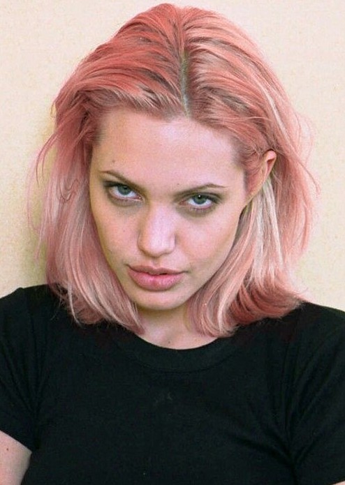 This photo shows us one of Angelina Jolie’s mid-length hairstyle with incredibly stylish pink tone. The super textures hairstyle makes Angie look mysterious and charming as ever.