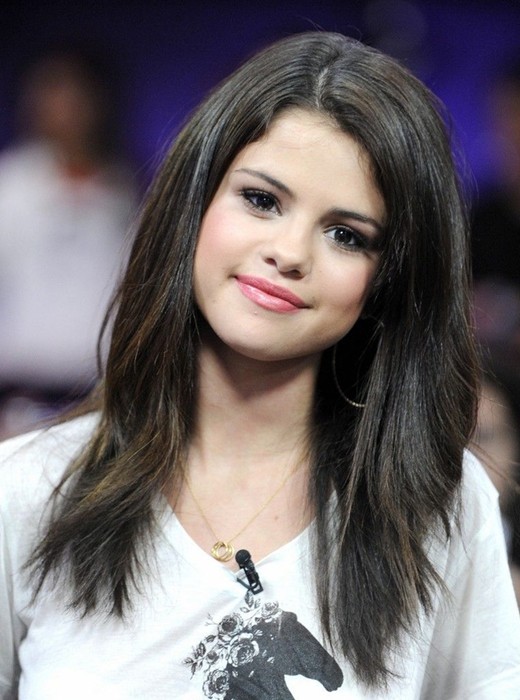 Selena Gomez rocks her shiny straightened hair loose and it is features long layers and the elegant side part. The thinned hair ends get rid off the weight of the long hair.