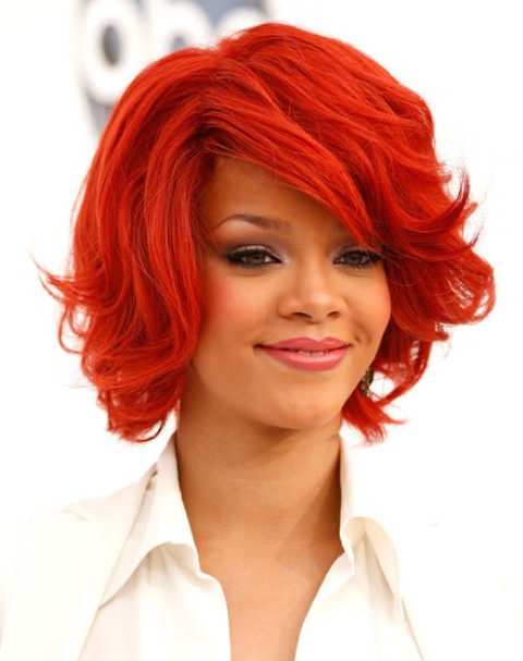 Recording artist Rihanna arrives at the Billboard Music Awards at the MGM Grand Garden Arena in Las Vegas, Nevada. This Rihanna hairstyle is quite eye-catching since the color is quite bright. Create some layers at the sides and at the back. The waves can make your hair more voluminous and full of vigor. The hairstyle is ideal for people with long face shape. It is quite simple to create and maintain the hairstyle. You can use some blow-wave and styling products to keep the hairstyle in style and shape. Apply some hairspray to keep