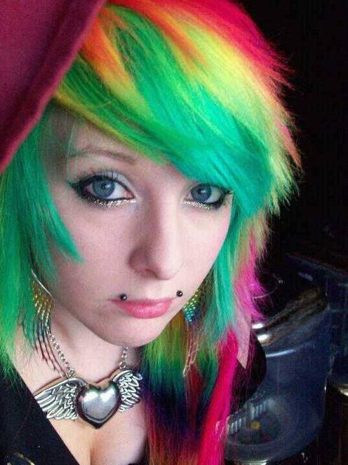Scene hairstyles are quite stylish and chic. Such a style is created in a way that you cut the upper hair shorter and the lower hair slightly longer. You can also pair it with some deep layer and cool bangs. In addition, for bold effect, you can use hair colors and highlights. The scene hairstyles can be ideal for any girl.