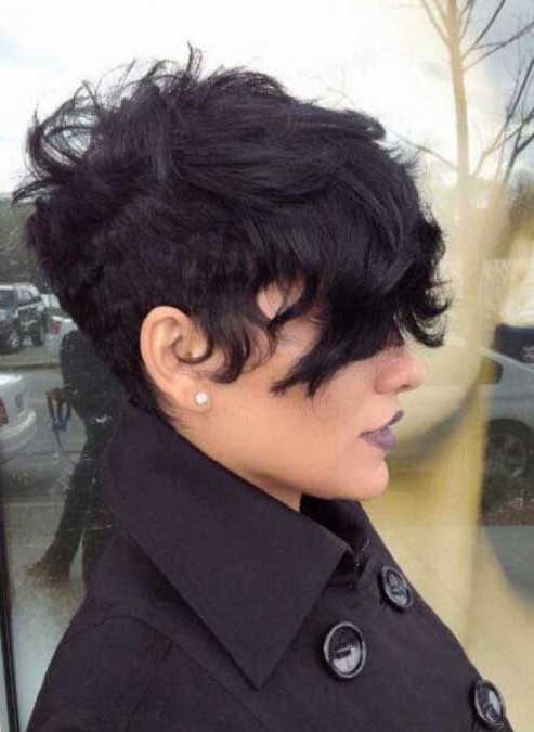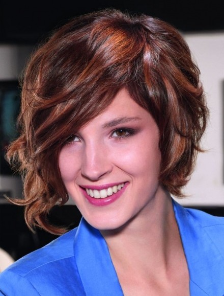 If you bear wavy hair, you can try out the short curly cuts. First, get some layers at the side and at the back. Some long bangs can be ideal for such hairdos. For better effect, you can apply some hair serum on your wet hair and mess the hair.